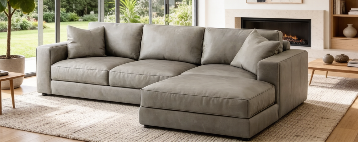 モジュール式のデザインにより、温かく居心地の良いリビングルームのリラックス空間が生まれます。